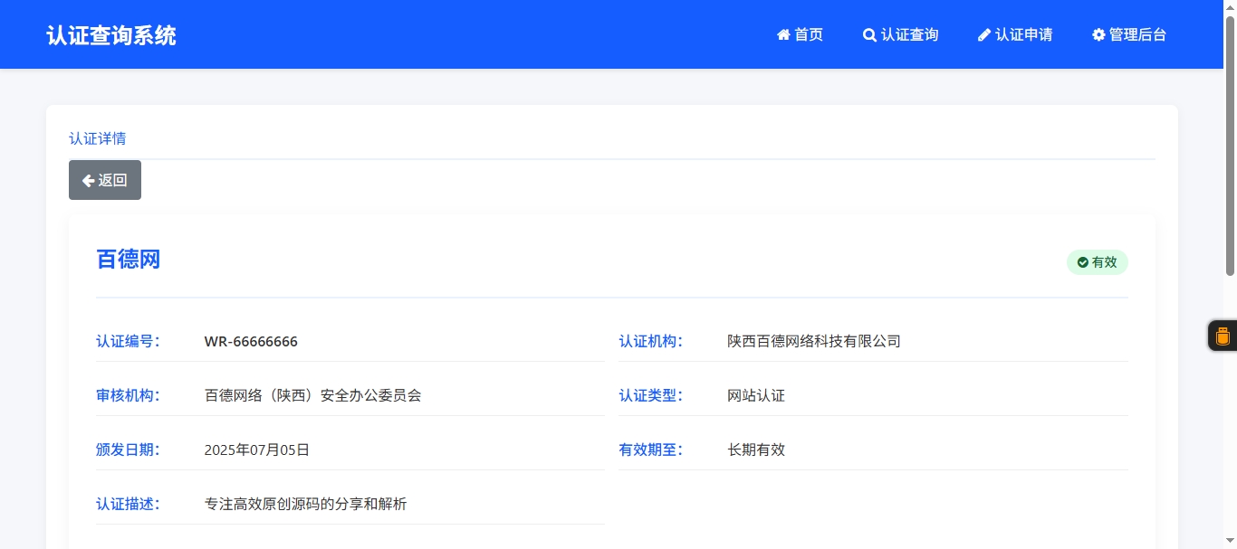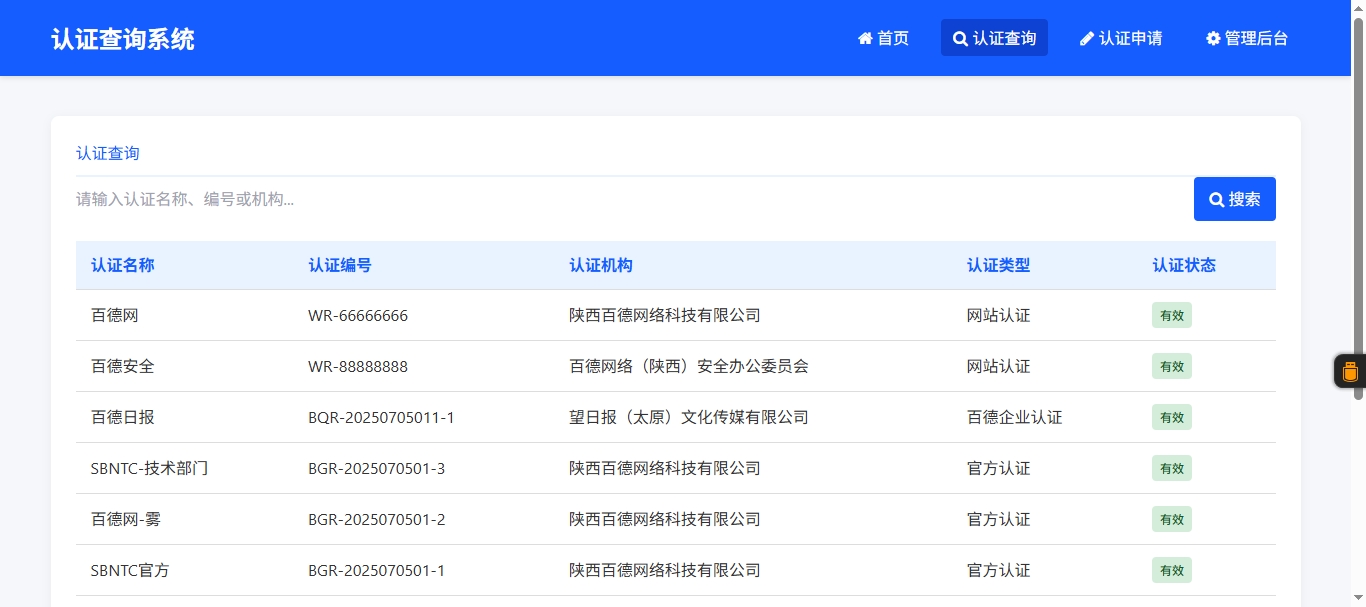 源码截图 在线体验地址:https://www.sbntc.cn/auth 环境要求 本系统全套简洁无后门,对服务器无任何要求 PHP>=5.6 MySQL>=5.6 安装教程 1、将db.sql导入到数据库即可 2、访问http://你的域名/admin即可 3、后台默认账号密码:admin 视频教程